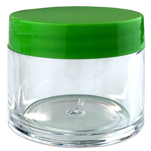 High Quality 30G/30ML Green Lid Container Jars Reusable Acrylic Jars to Store Creams, Lotions, Make Up, Cosmetics, Lip Balm, Lip Gloss, Scrubs, Salves, Nail Accessories, Charms, Beads, Small Jewelry and More Can Be Used For Mixing or Sampling Beauty or Health Products Great for Professional or Personal Use Lightweight and Compact for Easy Travel Use
