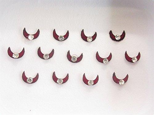 This Listing is for: * 26 adorable moon goddess maroon bindis in one pack set. * Size: 5 mm * Half moon shaped * Color as shown in the pic. * Long Lasting * Ready to use * Reusable Usually worn on Forehead and Belly Buttons / Navel or any exposed Body part.