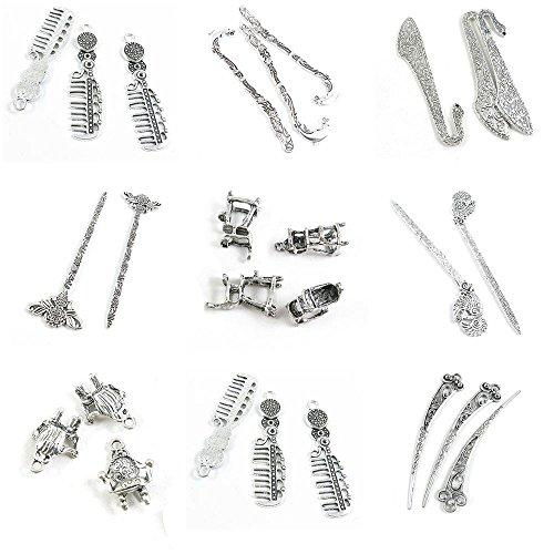 - 26 Pieces Antique Silver Tone Jewelry Making Charms Hairpin Hair Pin Bookmark Comb Haircomb Sofa Chair Phoenix Sticks Umpire Flower Book Mark Broadsword Dolphin
